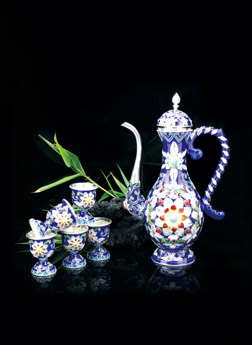 “花丝语”掐丝珐琅彩银酒具